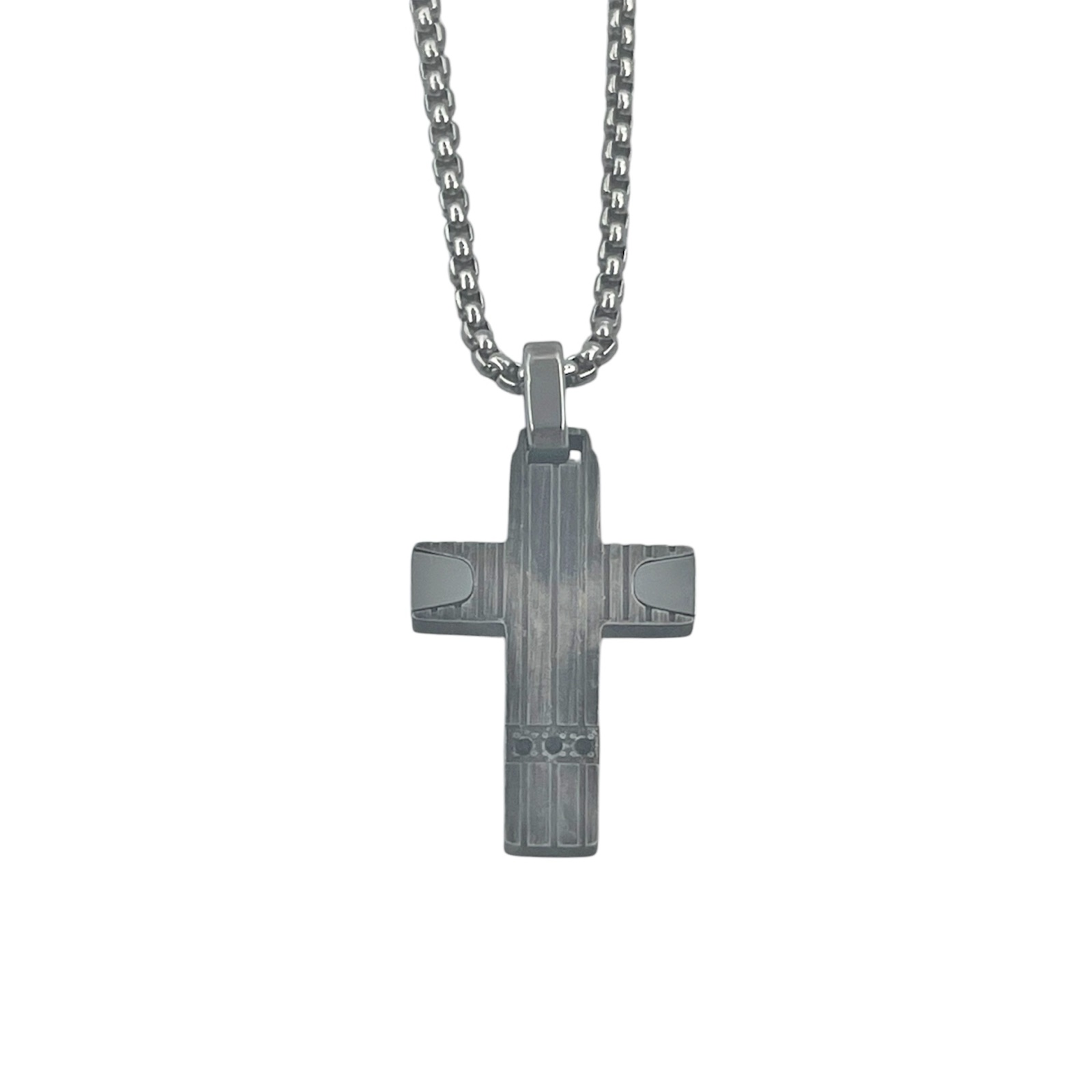 Αναβάθμισε το στυλ σου με το Iron Line Cross, έναν μοντέρνο αντρικό σταυρό από ανοξείδωτο ατσάλι, σχεδιασμένο με λεπτές κάθετες γραμμές που του προσδίδουν industrial, δυναμική αισθητική. Οι λείες πλαϊνές λεπτομέρειες δημιουργούν αντίθεση με την υφή, κάνοντας το σχέδιο ακόμα πιο επιβλητικό και αρρενωπό.