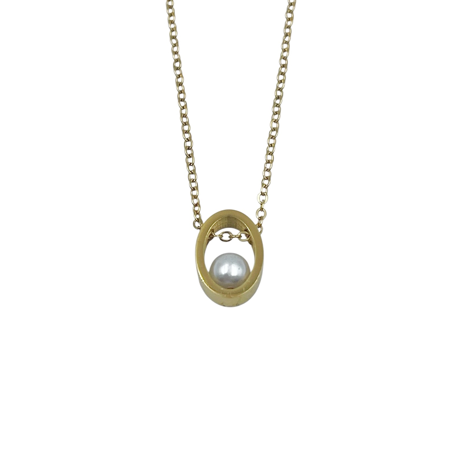 Αναδείξτε τη διαχρονική σας κομψότητα με το κολιέ Eternal Pearl . Ένα μοντέρνο σχέδιο που συνδυάζει τη λιτότητα του μετάλλου με τη διακριτική λάμψη μιας λευκής πέρλας, κλεισμένης μέσα σε ένα ελλειπτικό πλαίσιο. Η αλυσίδα από ανοξείδωτο ατσάλι προσφέρει αντοχή και εκλεπτυσμένο φινίρισμα, καθιστώντας το ιδανικό για κάθε περίσταση από την καθημερινότητα έως τις πιο ξεχωριστές στιγμές σας.